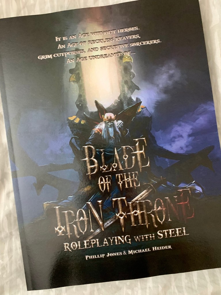 I believe Arlen is hacking the system from “Blade of the Iron Throne” for his game. We did a one-on-one run-through of character creation last weekend and I re-created Goriel Swiftfoot. Arlen then ran Goriel through an intense and desperate street fight with two corrupt town guards. It was a LOT of fun and I am stoked to be playing in his game.