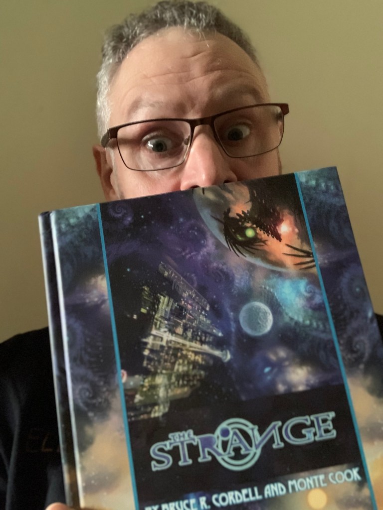 Finally, starting on July 30th, I am keyed up to run three sessions in The Strange – a game designed by Monte Cook Games using the Cypher System. This is a modern-world setting that sends characters off into the weird alternate dimensions of The Strange – an alien construct around Earth that contains physical sub-realities, each of which itself mimics a created fictional world invented in the minds of humans.