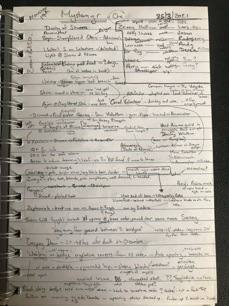 To my mind, there is no greater honour and better reward for being the Game Master than to see evidence that your players are engaging with the game. That’s not to say there are not other means of gauging engagement, or that notes are the highest expression of such. I am simply acknowledging that seeing a player share notes with the other players – in this case digitally via our Discord – was a moment of much-needed clarity for me.