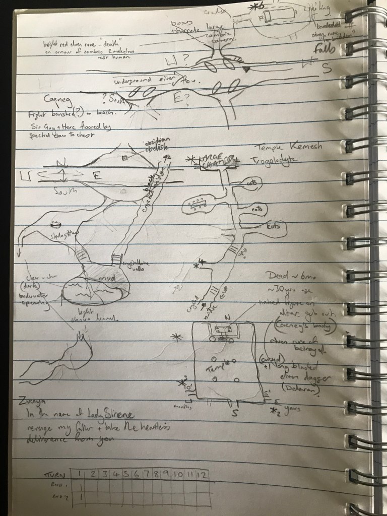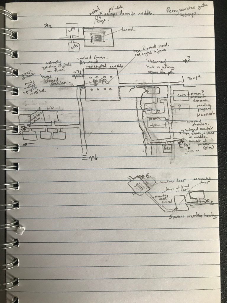 This is a glimpse into the way in which the player is imagining the locations in the “dungeon” – the place that my notes call the “The Lair of The Banshee”.