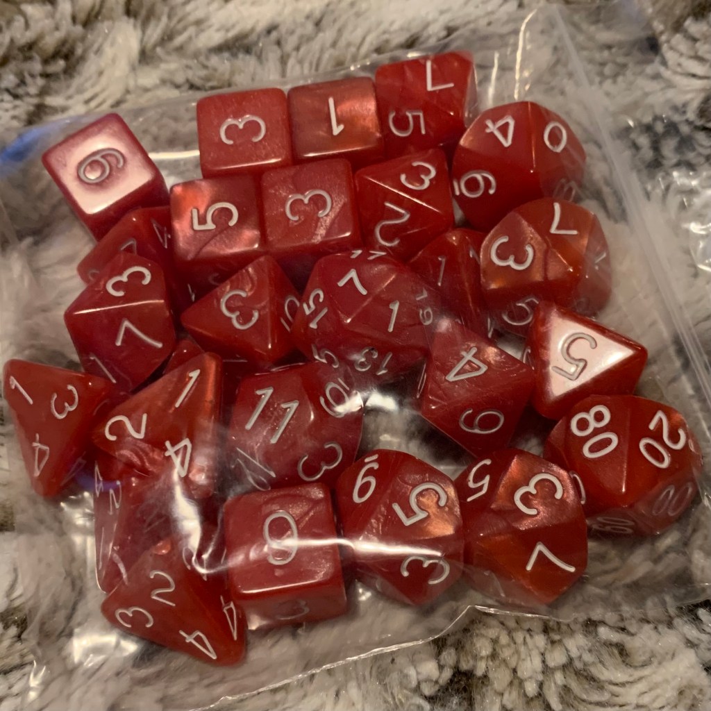 A new bag o’ dice. That I get to roll during play. Which are rather nice to read and use.