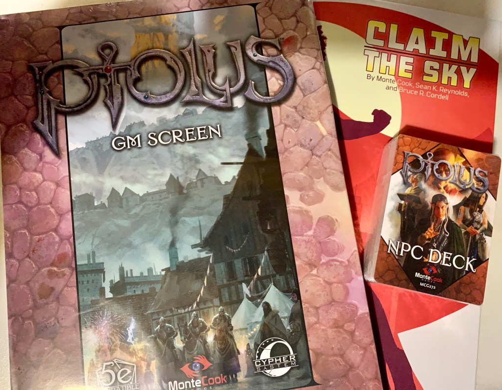 Yesterday, I was blessed to receive a cool package from Monte Cook Games. Most exciting was the “Claim The Sky” superhero genre book for the Cypher System. Check it out!