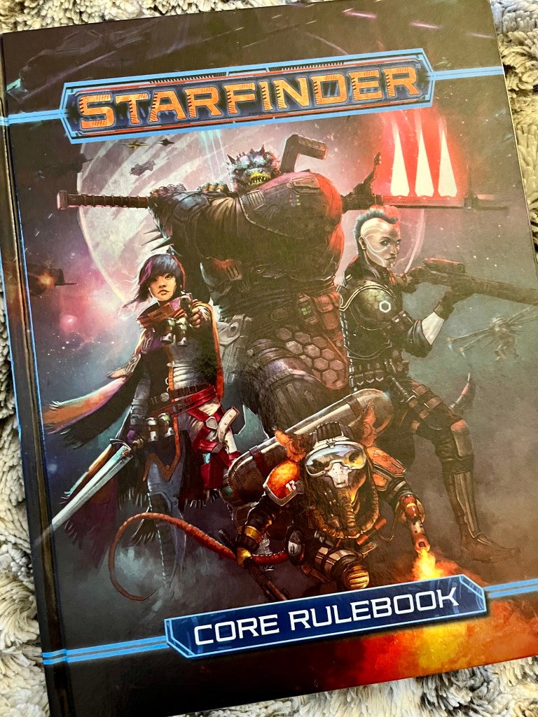 One of the presents I received on Christmas Day was the Starfinder Core Rulebook. While I have had a copy of the .PDF tucked away in my slurry of digital RPG products for many months, I hadn’t given it much attention. There is something about a nice shiny hardback book that invites me to read in a way that a .PDF file never has.