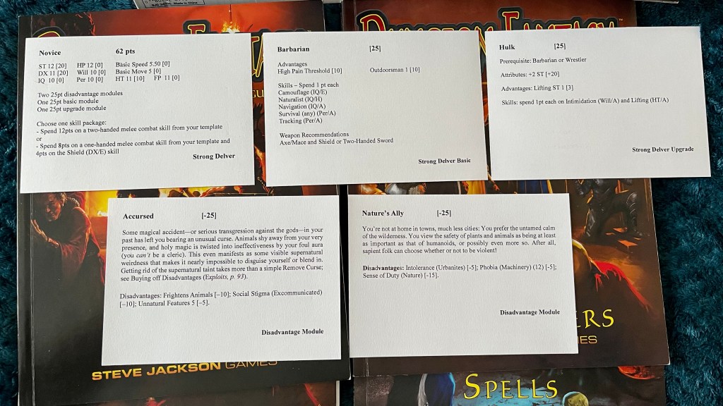 Collaborating with a friend of mine (thanks, Bob!), we’ve stripped the basic text from the Delvers To Grow supplement by Gaming Ballistic and turned them into index cards.