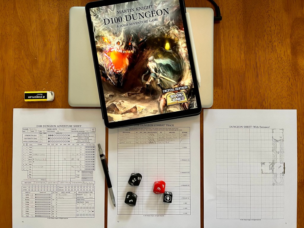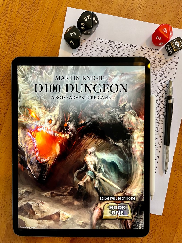 Having won a $25 voucher in The Redcaps Podcast Child Hero Contest – something that I really did not expect – I decided to buy a copy of the D100 Dungeon Solo Adventure Game by Martin Knight. Given my recent re-kindled interest in the dungeon delve and my status as home alone, I thought it might be good fun to give the game a go.