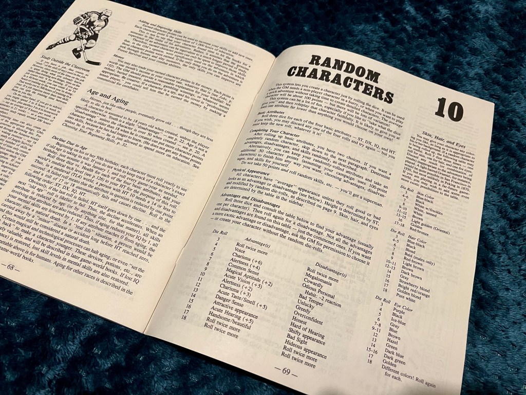 I’ve mentioned before that one of the features I enjoy from classic GURPS is the chapter on Random Characters. At the weekend, I dug out my GURPS 1st Edition boxed set and had an absolute blast rolling up some characters using those rules. There are three reasons why I think having those rules is cool.