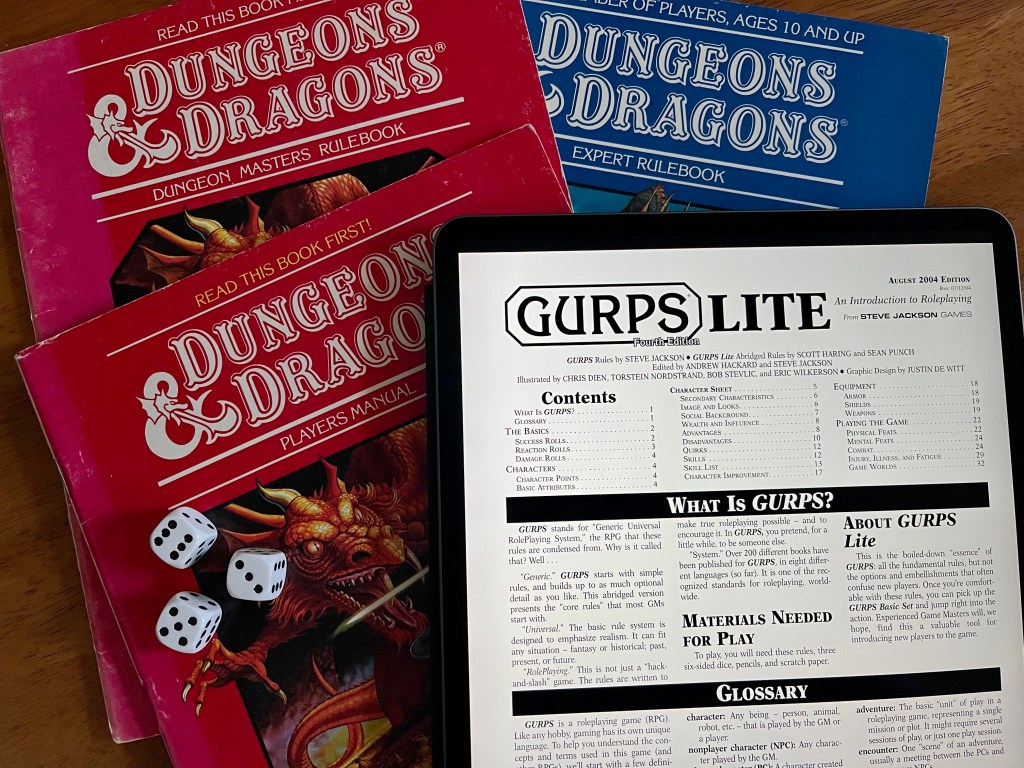 Back in 2019, I ran a megadungeon game, powered by GURPS (and later by Dungeon Fantasy Roleplaying Game, itself powered by GURPS) named the Dungeons of Thaarl. It’s 2023 and by Easter, I’d like to get that idea back up and running as an Open Table game. The twist? I want to run it using a simple hack of GURPS that I unimaginatively named, “Simple GURPS”.