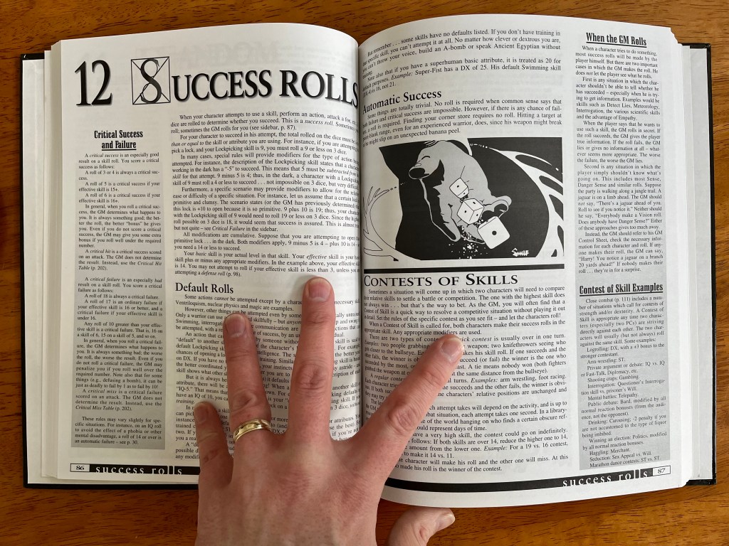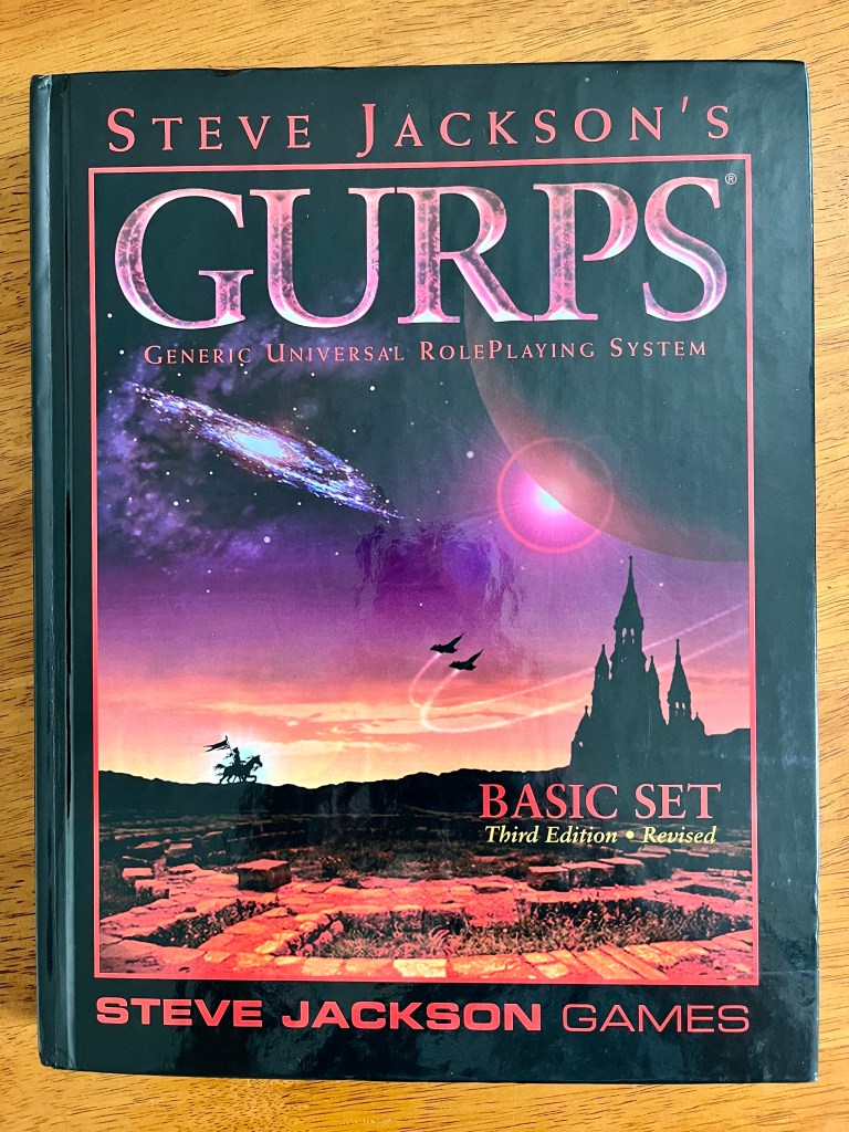 I’m currently having one of the most joyful experiences in life, that of learning something new that you also discover you are falling in love with. In my case, it’s the GURPS Basic Set Third Edition (Revised) rulebook. Even better than that, a good friend sent me an unwanted hardcover copy of that very rulebook – who could ask for more?