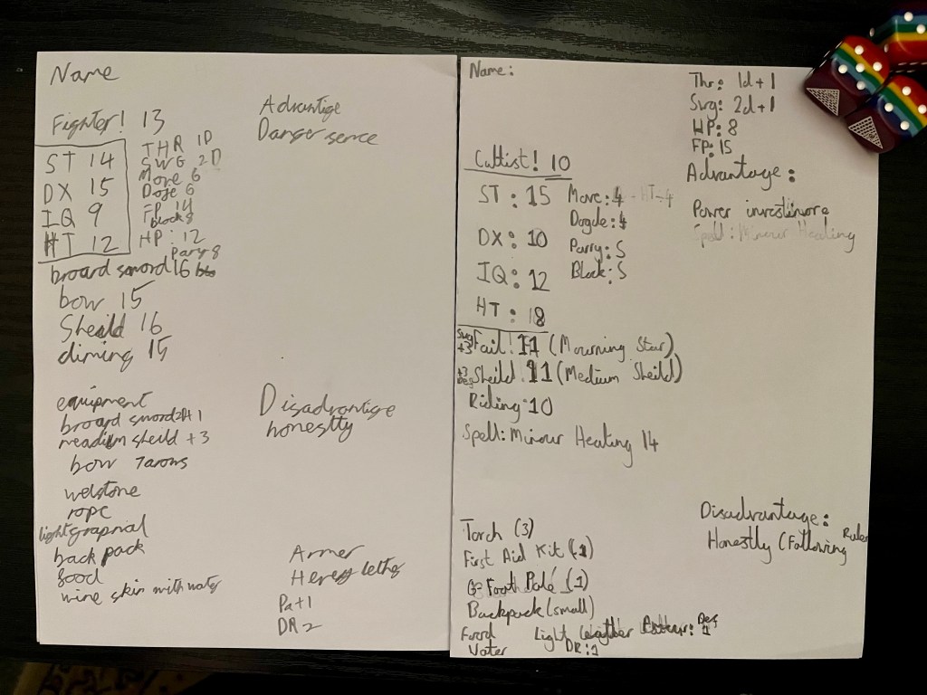 Although there are two D&D5e groups playing, one DM’ed by a Year 7 student and the other by a Year 9, I felt genuine pleasure from having two Year 9 chaps who wanted to give Simple Dungeon GURPS a bit of a go.