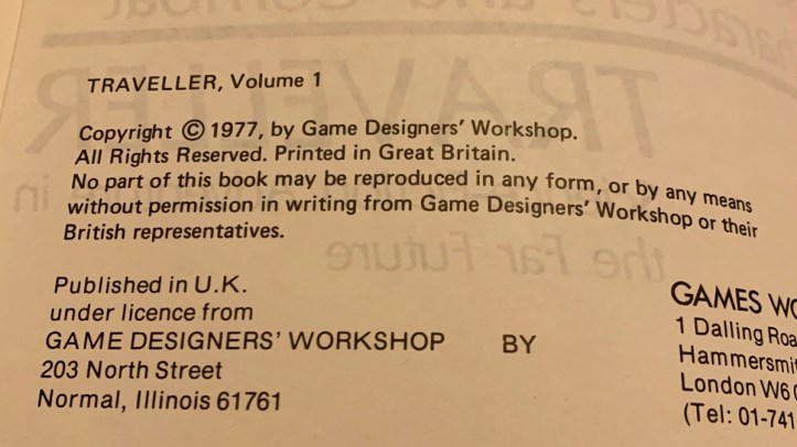 Having played the 1977 original has some significance because the 1981 revision (which I also own) began to introduce more overtly the Official Traveller Universe (OTU) and subtly changed the feel of the game. While the 1981 revision cleared up several points, it also marked a shift away from the do-it-yourself spirit of the original.