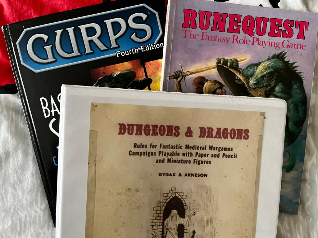 What’s my favourite RPG of all time? That is a complicated question to answer. There are three different possibilities: GURPS, RuneQuest 2e, and OD&D.