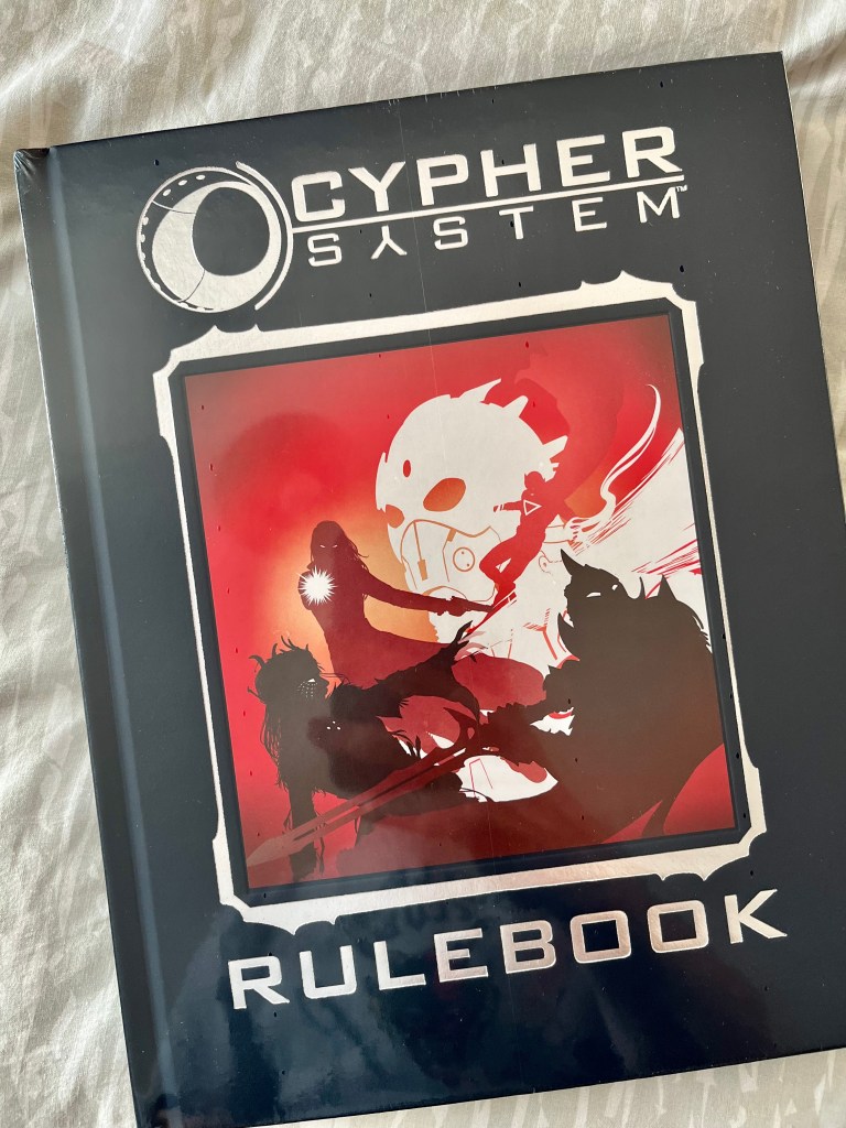 Postie came today and delivered a copy of the Cypher Deluxe Rulebook, which is a lovely tome. Yeah, I own Cypher already but it’s a bonus arising from the Cypher Starter Set campaign from a year or so back.