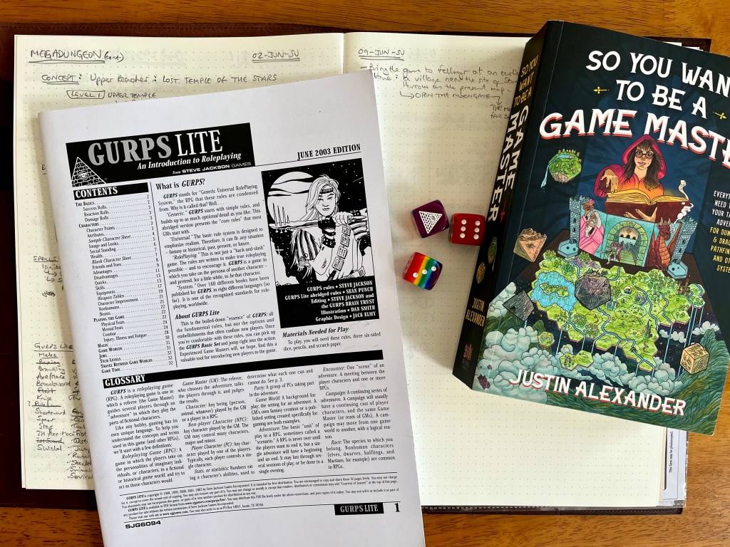I want to generate the vibe of old-school D&D without fiddling around with polyhedral dice. I decided to use GURPS Lite (3e) because I want a lighter set of rules, want to include magical spells, and want to make it free to join in. The goal is to add Basic Set and Magic once the game is up and running for those who want more options.