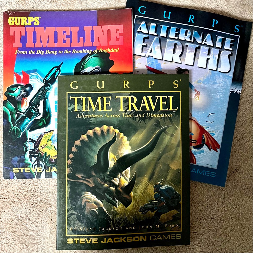 As I return to GURPS Third Edition, I find myself drawn towards using all those setting and genre books on my shelves and the ideas from Tangents and Infinite Worlds are prescient in my mind. The heart of this in 3e is the Time Travel book, but there’s also the Alternate Worlds and Timeline books to support the concept.
