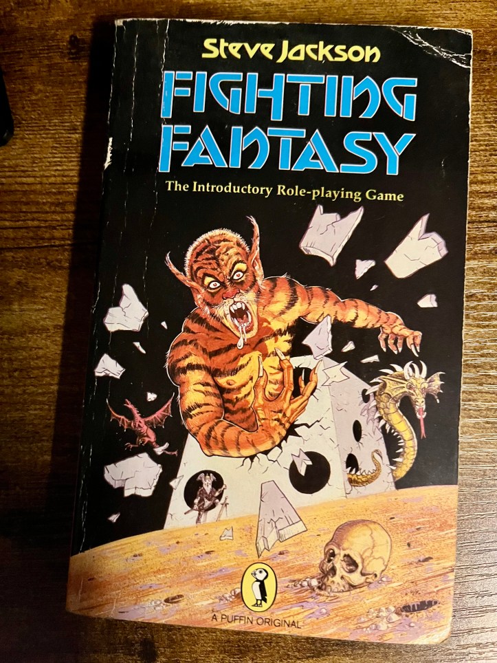 This week has been focused on Fighting Fantasy as an RPG, an idea that certainly dates back at least to 1989 for me when I read “Dungeoneer”, but perhaps earlier when I was playing the Fighting Fantasy game books and feeling like they didn’t quite hit the spot. The missing element was the sense of freedom that comes from a true roleplaying game.